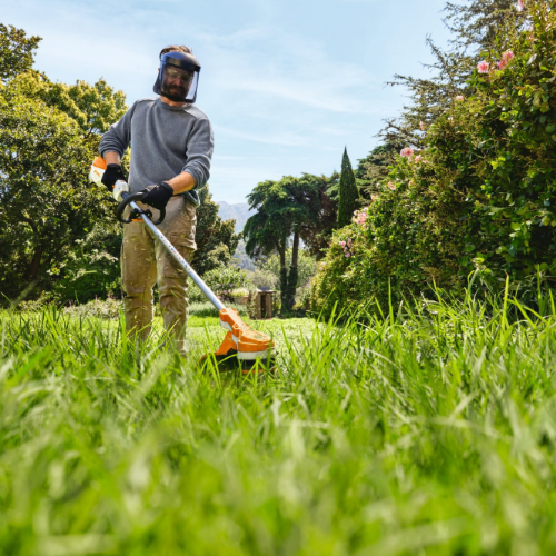 O design compacto do STIHL FSA 70 R bem equilibrado e o cabo circular com componente macio permitem-lhe cortar a relva com flexibilidade e ter um elevado grau de liberdade de movimentos ao cortar entre árvores e arbustos e noutros espaços confinados. Além disso, a pega ajustável sem ferramentas permite um fácil ajuste à sua altura, para que tenha sempre uma posição de trabalho ergonómica. A roçadora a bateria FSA 70 R é tão silenciosa que pode utilizá-la sem proteção auditiva e até mesmo em áreas sensíveis ao ruído.